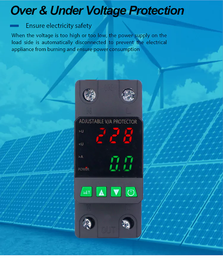 Equipado con una pantalla digital y fabricada con componentes electrónicos modulares importados, tiene alta confiabilidad y rendimiento. El protector corta automáticamente y rápidamente la fuente de alimentación durante los voltajes anormales (como sobretensión, subtensión o fluctuaciones de la cuadrícula) y restaura la fuente de alimentación después de que el voltaje vuelve a la normalidad.