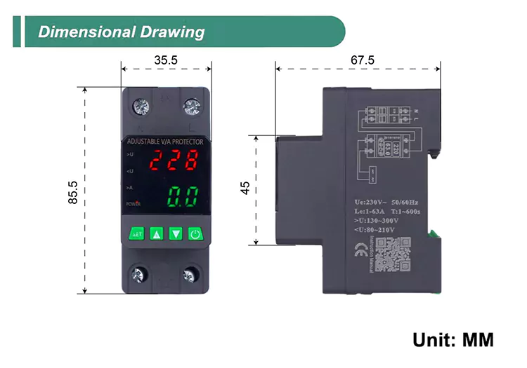 4. El relé del protector de voltaje de 2 polos presenta un diseño modular para una fácil instalación de seguimiento, mejorando su apariencia y funcionalidad.