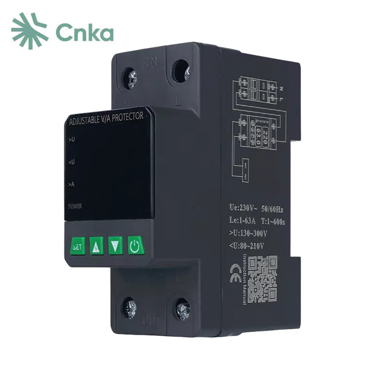 CNKA es un conocido proveedor chino que proporciona al por mayor el relé del protector de voltaje de 2 polos de su marca. Estos dispositivos están diseñados específicamente para circuitos AC de AC de Fase monofásica, 50Hz con una corriente nominal de 63A, lo que los convierte en una opción ideal para proteger cajas de distribución residencial o cables que suministran energía a equipos monofásicos.