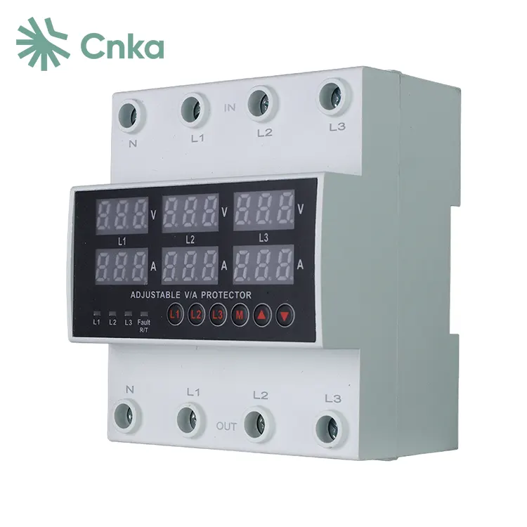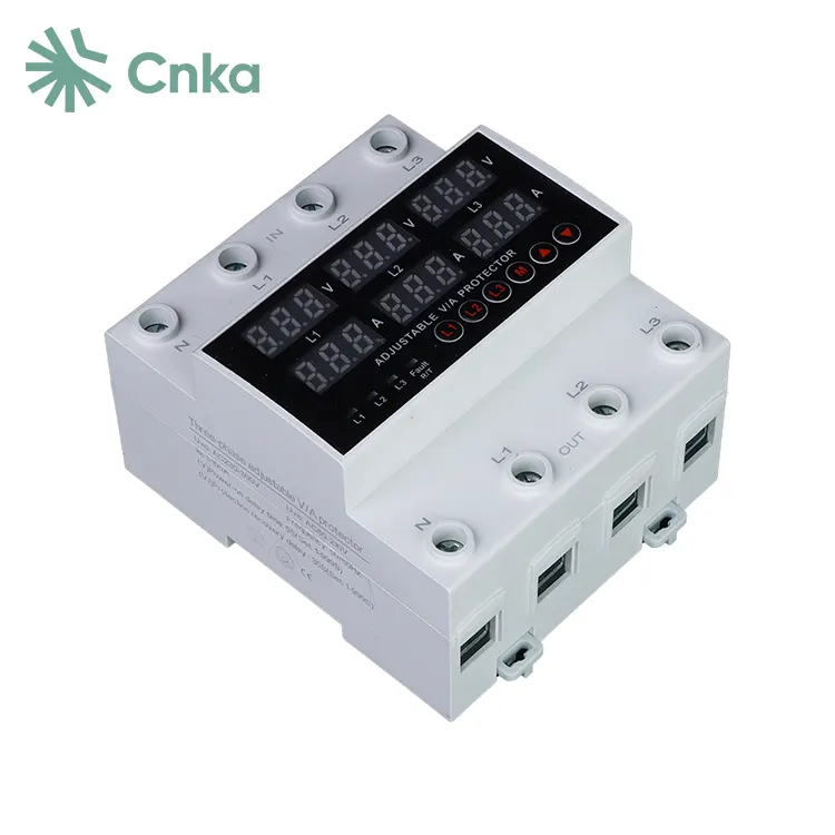 CNKA, un conocido proveedor chino, vende al por mayor su propia marca de protectores de voltaje trifásicos de 4 polos. Estos dispositivos están especialmente diseñados para circuitos monofásicos AC 220V, 50Hz con una corriente nominal de 63A, lo que los hace ideales para proteger cajas de distribución residenciales y los cables que suministran energía a equipos monofásicos.